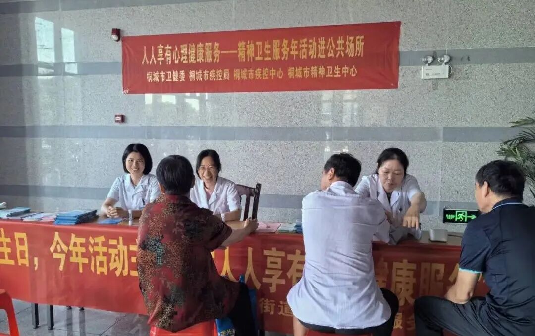 在桐城市卫生健康委的统筹指导下,安徽省荣军康复医院精神卫生中心积极配合桐城市疾控中心,开展了一系列宣传服务活动,将专业的心理健康服务带到市民身边。