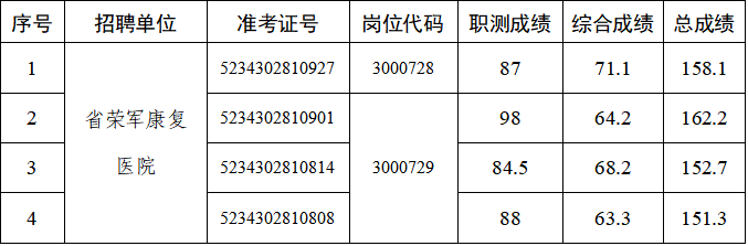 按照应聘人员笔试成绩从高分到低分顺序,根据招聘岗位计划数,按照3:1比例确定各岗位参加专业测试人员名单(见附件),并进行资格复审。