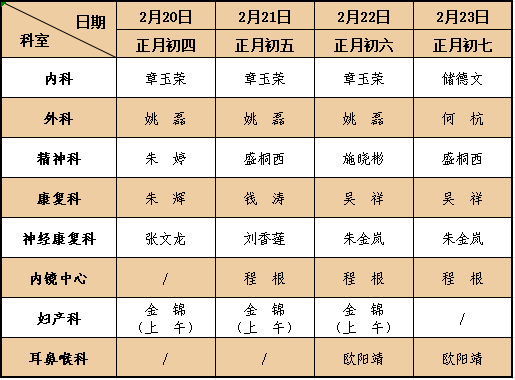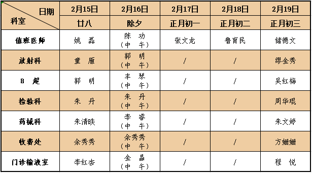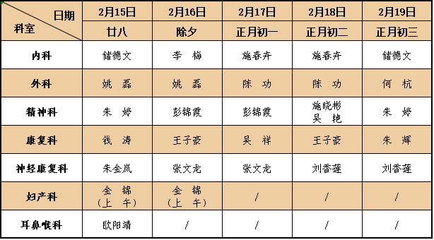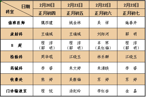 (温馨提示:除夕晚班门诊、大年初一、初二中晚班门诊暂停服务,切勿跑空!)